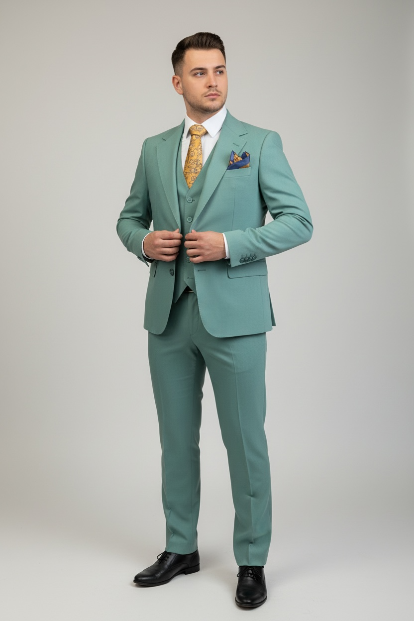 Costum bărbați slim fit, VERDE MENTA